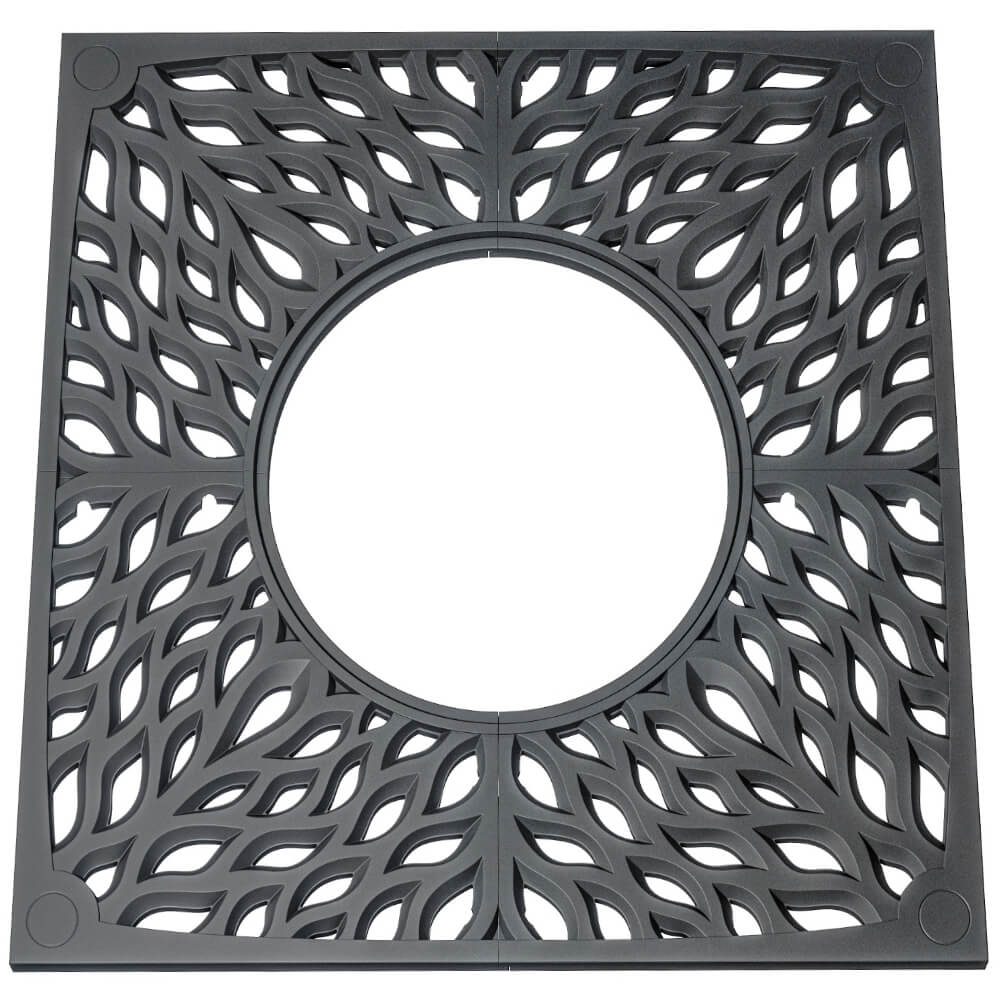 Прикорневая решётка Crust Черная 2х2м для городского благоустройства. Состоит из 4-х отдельных элементов в форме кроны дерева, в углах элементов предусмотрены места для прожекторов, секции между собой стягиваются болтами. Скрытая стыковка секций является особенностью данной модели и создаёт целостный вид. Решетка укладывается на почву вокруг деревьев, чтобы обеспечить благоприятные условия для их произрастания. Использование приствольных решёток является важным моментом при благоустройстве городских улиц, парков и скверов. Они способствуют сохранению естественной рыхлости почвы, защите корневой системы растений и свободному проникновению влаги, воздуха и солнечных лучей.